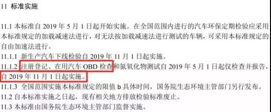 新標(biāo)準(zhǔn)由于修訂內(nèi)容較多,增加了OBD檢測等新內(nèi)容,因此標(biāo)準(zhǔn)實(shí)施采取分步走方式。
