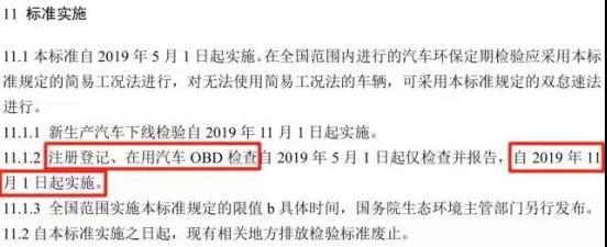 也就是說,從5月1日到10月31日,注冊登記、在用汽車OBD檢查僅檢查并報(bào)告問,不參與合格判定。但從2019年11月1號開始,相關(guān)檢測就要參與合格判定了。